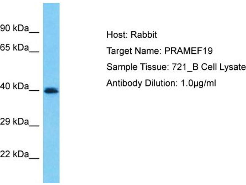 This is a rabbit polyclonal antibody against PRAMEF19. It was validated on Western Blot.