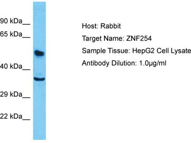 The Rabbit Polyclonal anti-ZNF254 antibody (ABIN2792044) specifically detects ZNF254 in WB.