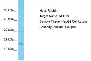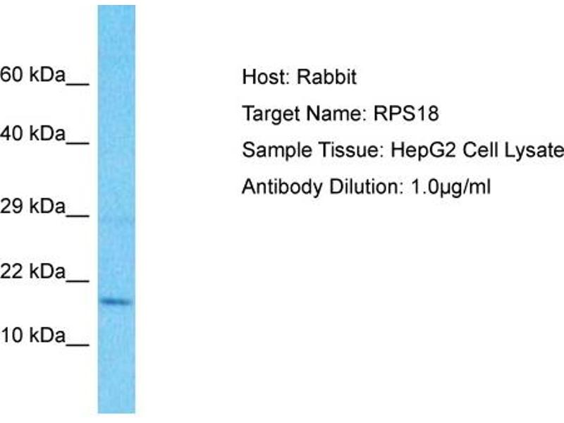 RPS18 located at the top of the head of the 40S subunit, it contacts several helices of the 18S rRNA. Alias Symbols: D6S218E, HKE3, KE-3, KE3, S18 Protein Interaction Partner: HUWE1, UBC, TP53, CEP250, TUBGCP3, CEP57, TUBG1, RPSA, EIF3E, EIF3CL, WIBG, TSR1, EIF3L, RPS4X, RPS3A, RPS3, RPS2, RPL28, LARP1, GNB2L1, EIF3D, EIF3A, RPS29, RPS28, RPS27, RPS26, RPS25, RPS24, RPS23, RPS21, RPS20, RPS19, RPS16, RPS15A, RPS14, RPS13, RPS12 Protein Size: 152