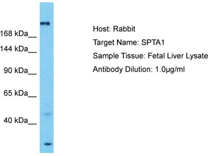 The Rabbit Polyclonal anti-SPTA1 antibody (ABIN2792075) specifically detects SPTA1 in WB.