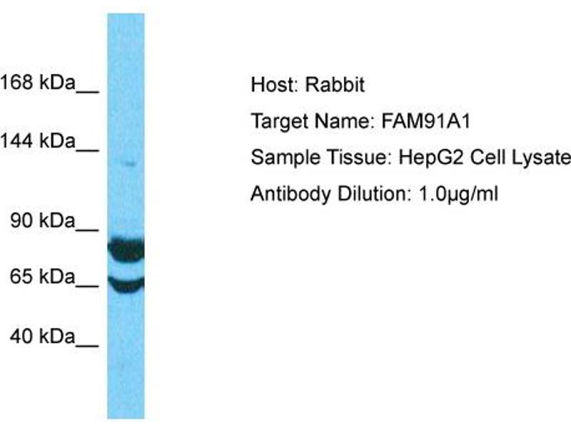 This is a rabbit polyclonal antibody against FAM91A1 . It was validated on Western Blot.