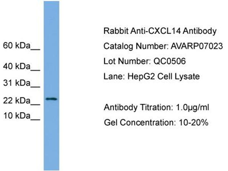 - This is a rabbit polyclonal antibody against CXCL14. It was validated on Western Blot.