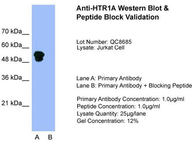 - This is a rabbit polyclonal antibody against HTR1A. It was validated on Western Blot using a cell lysate as a positive control.