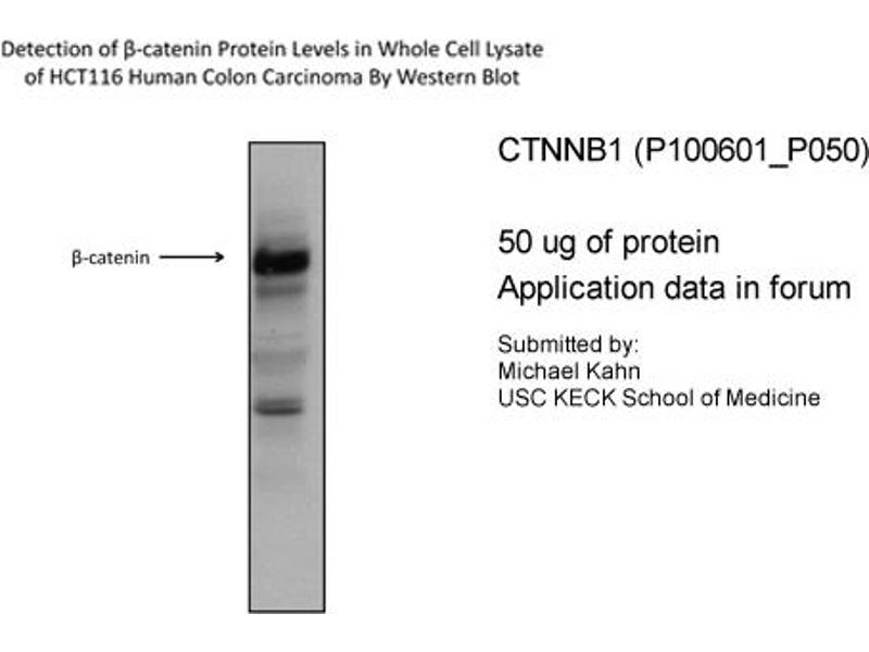 - The immunogen is a synthetic peptide directed towards the C-terminal region of human CTNNB1