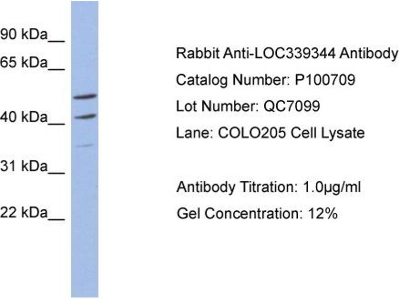- This is a rabbit polyclonal antibody against LOC339344. It was validated on Western Blot using a cell lysate as a positive control.