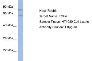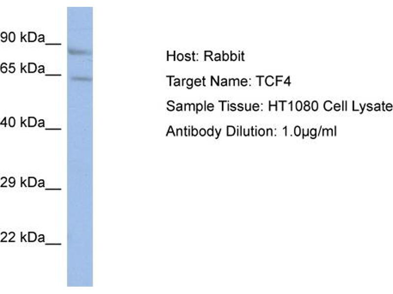 - This is a rabbit polyclonal antibody against TCF4. It was validated on Western Blot using a cell lysate as a positive control.