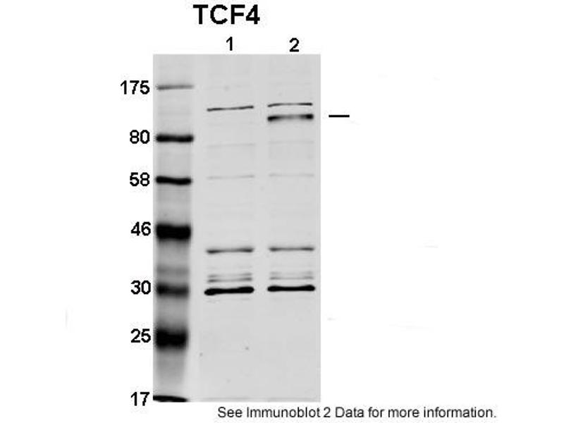 - This is a rabbit polyclonal antibody against TCF4. It was validated on Western Blot using a cell lysate as a positive control.