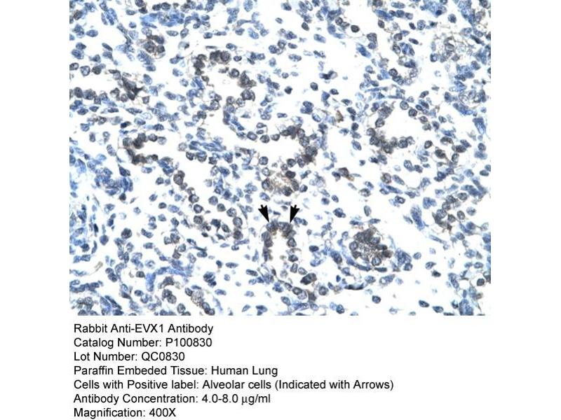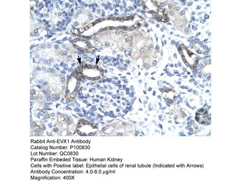 - This is a rabbit polyclonal antibody against EVX1. It was validated on Western Blot and immunohistochemistry.