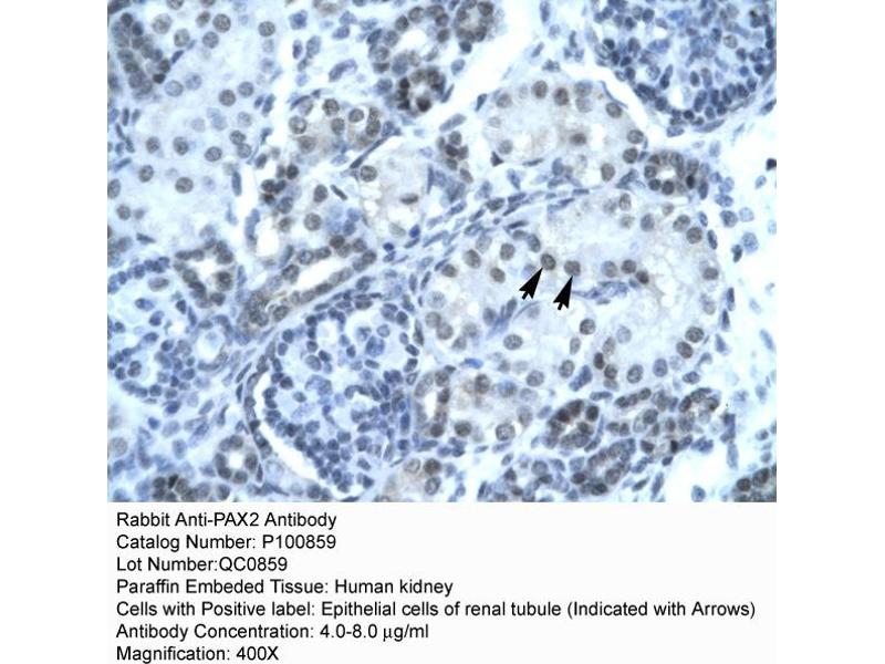 - This is a rabbit polyclonal antibody against PAX2. It was validated on Western Blot and immunohistochemistry.