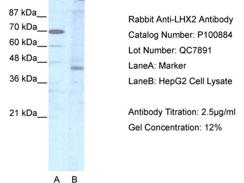 - This is a rabbit polyclonal antibody against LHX2. It was validated on Western Blot using a cell lysate as a positive control.
