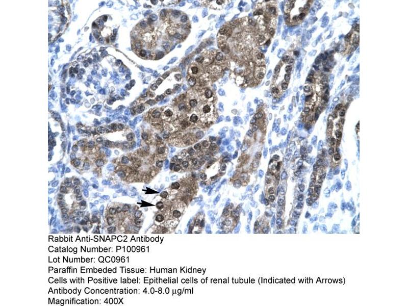 - This is a rabbit polyclonal antibody against SNAPC2. It was validated on Western Blot and immunohistochemistry.