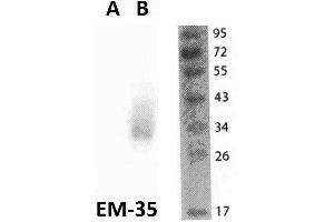 The mouse monoclonal antibody EM-35 recognizes an extracellular epitope on FOLR2, a 30-40 kDa cell surface protein serving as a receptor for folic acid.