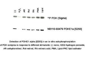 - Reacts with PDHE1 alpha phosphorylated Serine 293 from human, mouse and rat