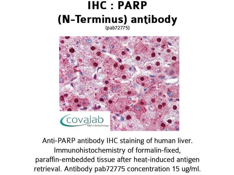 - Reacts with the N-terminus part of human, mouse and rat PARP