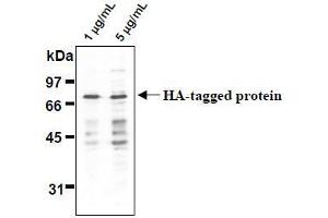 Epitope tagging has widely been accepted technique that fuse an epitope peptide to a certain protein as a marker for gene expression. With this technique, the gene expression can be easily monitored on western blotting, immunoprecipitation and immunofluorescence utilizing with an antibody that recognizes such an epitope. Amino acid sequences that are widely used for the epitope tagging are as follow, YPYDVPDYA (HA-Tag), EQKLISEEDL (Myc-Tag) and YTDIEMNRLGK (VSV-G-Tag), which corresponding to the partial peptide of Influenza hemagglutinin protein, Human c-myc gene product and Vesicular stomatitis virus glycoprotein respectively.Synonyms: HA Tag, HA-Tag, Hemagglutinin Tag