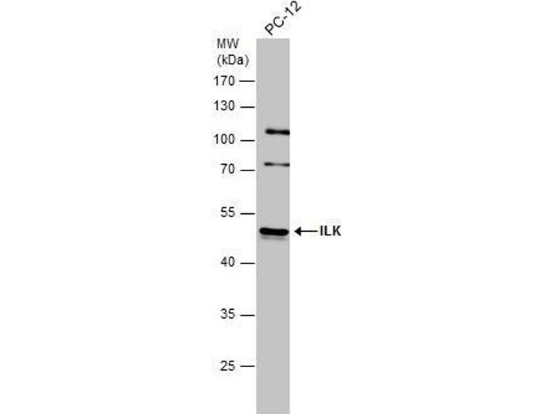 - Recombinant protein encompassing a sequence within the center region of human ILK. The exact sequence is proprietary.