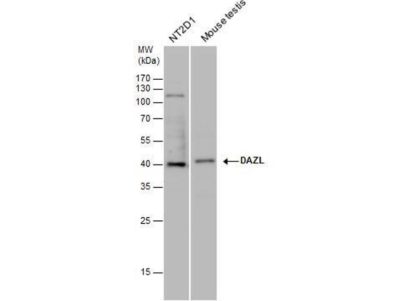- Carrier-protein conjugated synthetic peptide encompassing a sequence within the C-terminus region of human DAZL. The exact sequence is proprietary.