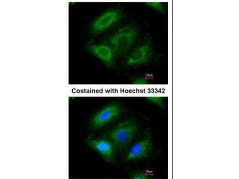 - Carrier-protein conjugated synthetic peptide encompassing a sequence within the C-terminus region of human ERAB. The exact sequence is proprietary.