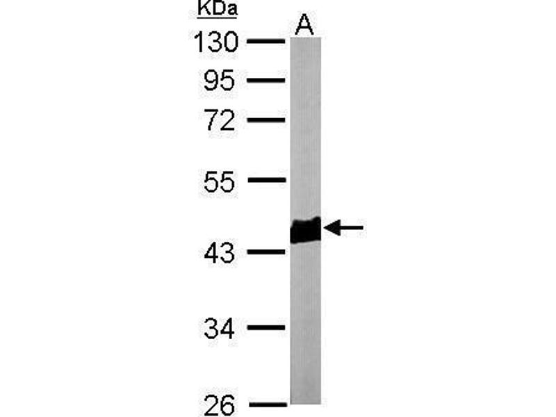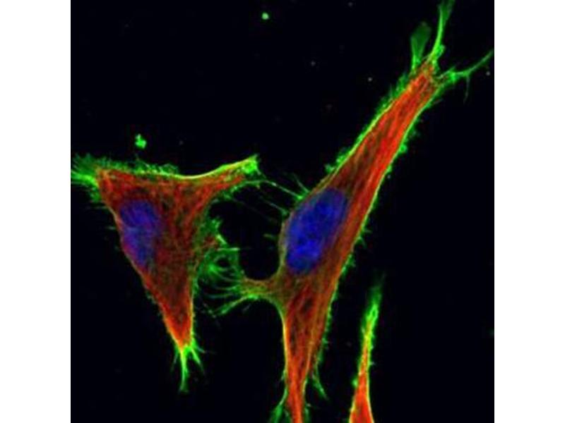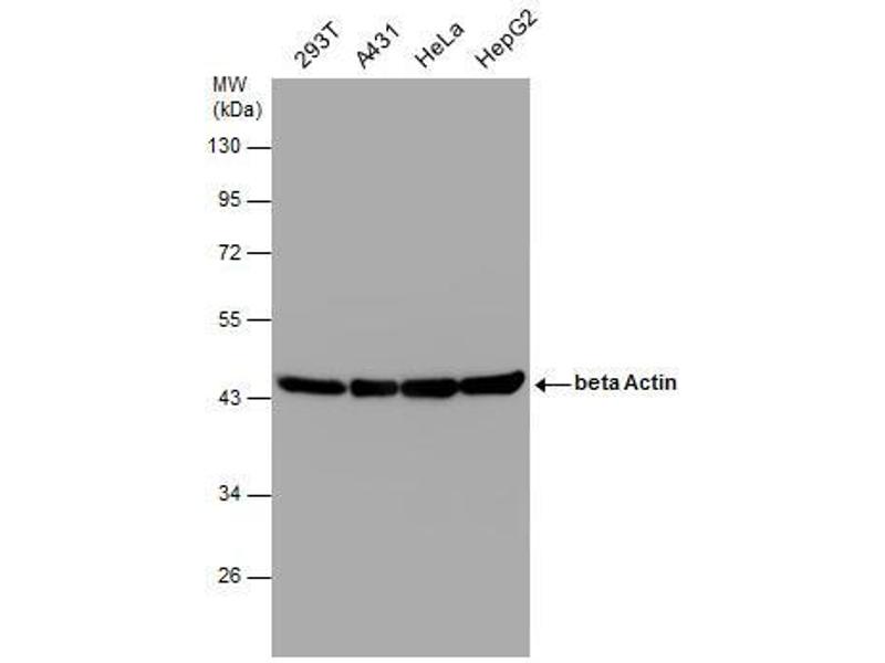 - Carrier-protein conjugated synthetic peptide encompassing a sequence within the N-terminus region of human beta Actin. The exact sequence is proprietary.