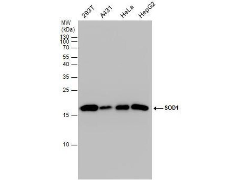 - Carrier-protein conjugated synthetic peptide encompassing a sequence within the C-terminus region of human SOD1. The exact sequence is proprietary.