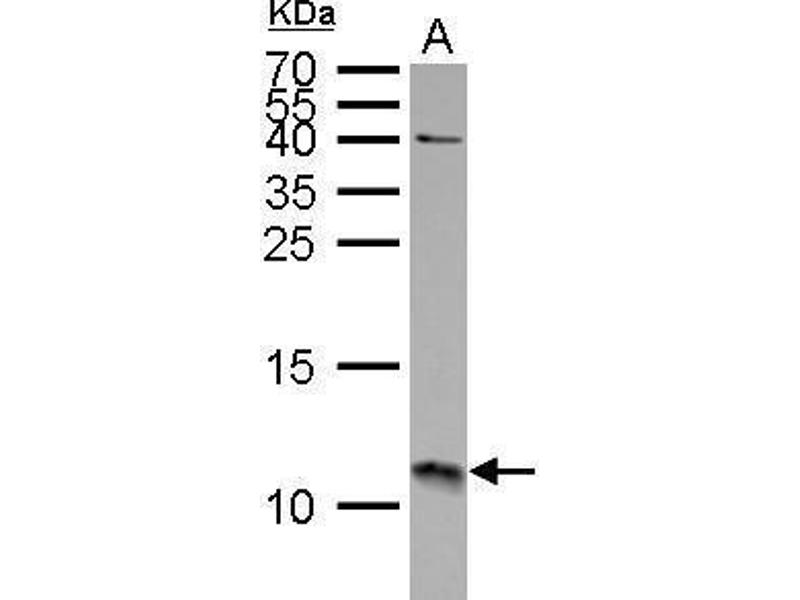 - Carrier-protein conjugated synthetic peptide encompassing a sequence within the center region of human S100A11. The exact sequence is proprietary.
