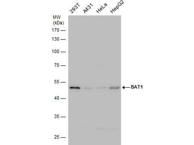 - Recombinant protein encompassing a sequence within the center region of human BAT1. The exact sequence is proprietary.