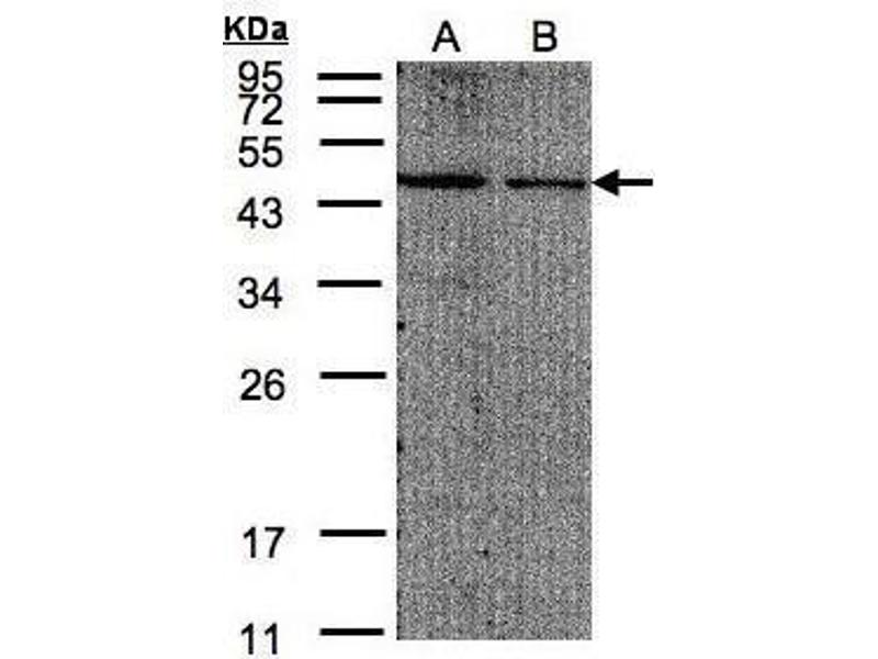 - Based on sequence homology, this antibody may cross react with EIF4A1 or EIF4A3 protein.
