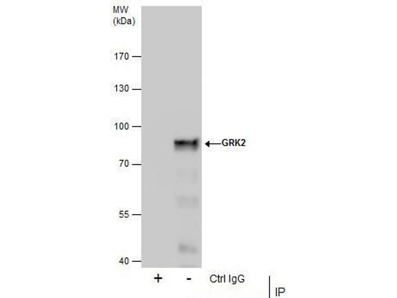 - Recombinant protein encompassing a sequence within the C-terminus region of human GRK2. The exact sequence is proprietary.