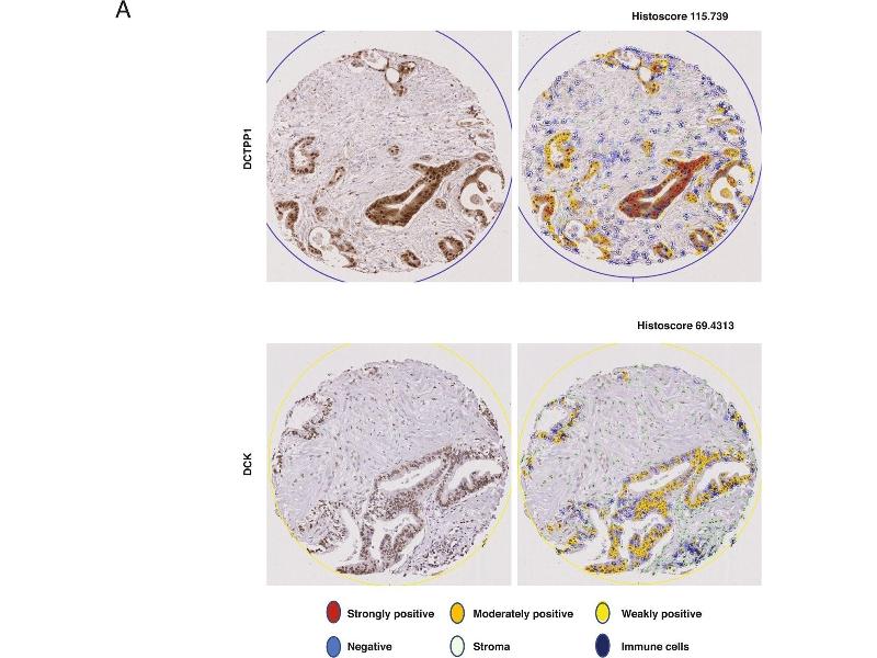 Deoxycytidine kinase (DCK) is required for the phosphorylation of several deoxyribonucleosides and their nucleoside analogs. Deficiency of DCK is associated with resistance to antiviral and anticancer chemotherapeutic agents. Conversely, increased deoxycytidine kinase activity is associated with increased activation of these compounds to cytotoxic nucleoside triphosphate derivatives. DCK is clinically important because of its relationship to drug resistance and sensitivity.