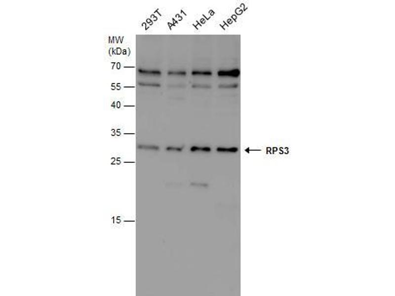 The Rabbit Polyclonal anti-RPS3 antibody (ABIN2855736) specifically detects RPS3 in WB, IF, ICC, IP and IHC (p).