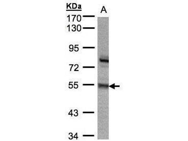 - Recombinant protein encompassing a sequence within the center region of human ZNF165. The exact sequence is proprietary.