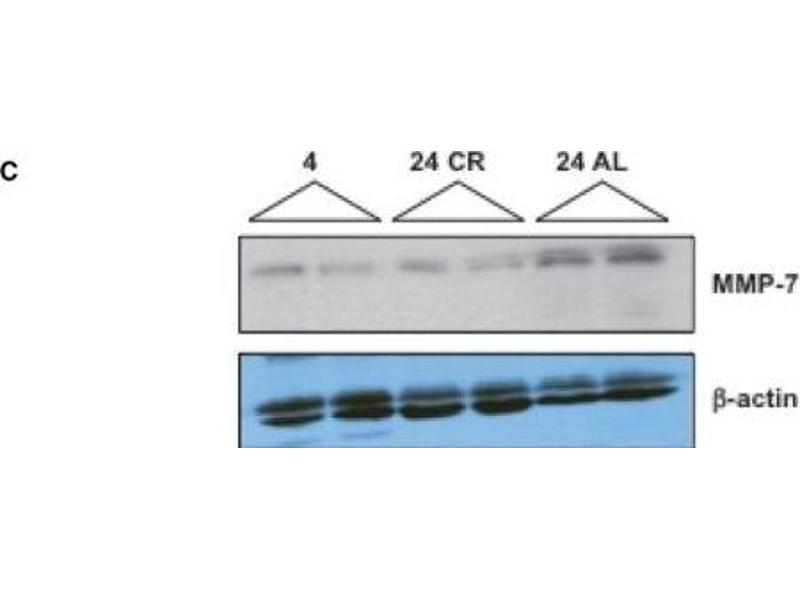 - Carrier-protein conjugated synthetic peptide encompassing a sequence within the C-terminus region of human MMP7. The exact sequence is proprietary.