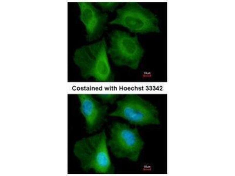 - Carrier-protein conjugated synthetic peptide encompassing a sequence within the C-terminus region of human CacyBP. The exact sequence is proprietary.