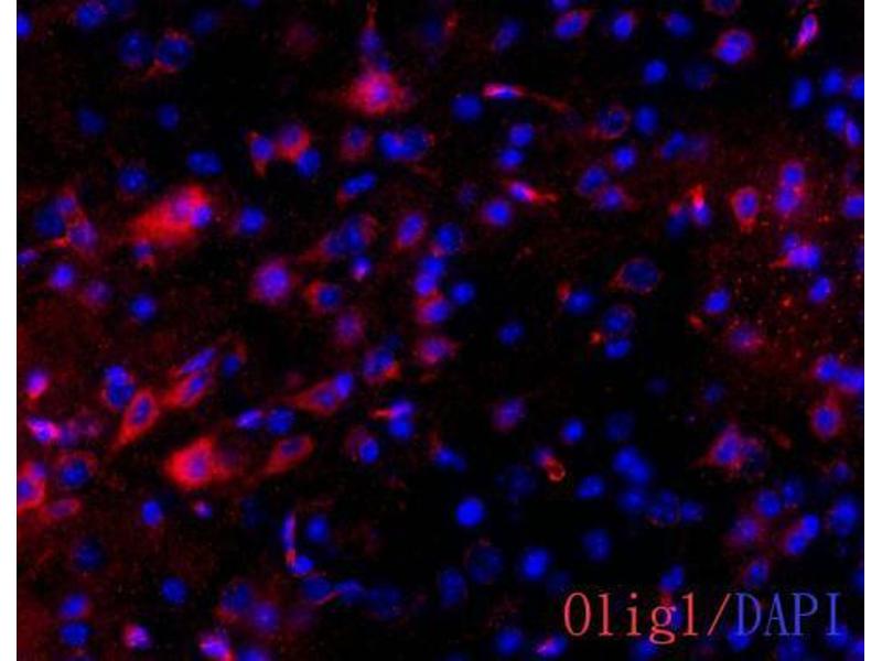 - Carrier-protein conjugated synthetic peptide encompassing a sequence within the C-terminus region of human OLIG1. The exact sequence is proprietary.