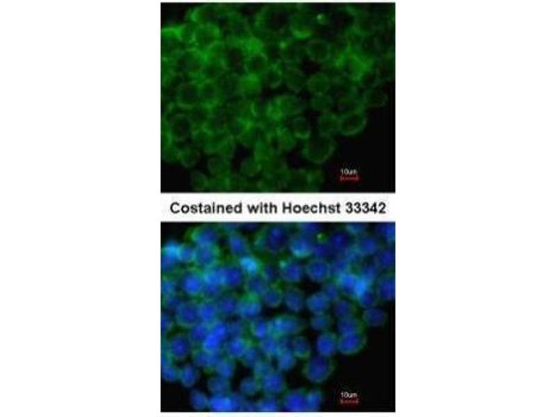 - Carrier-protein conjugated synthetic peptide encompassing a sequence within the C-terminus region of human IRF6. The exact sequence is proprietary.