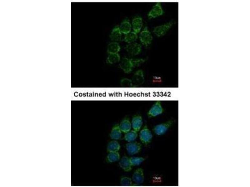 - Recombinant protein encompassing a sequence within the center region of human SIAT4A. The exact sequence is proprietary.