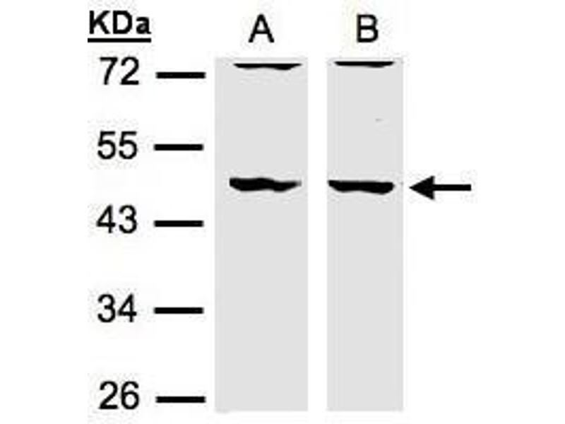 - Carrier-protein conjugated synthetic peptide encompassing a sequence within the N-terminus region of human HIP55. The exact sequence is proprietary.