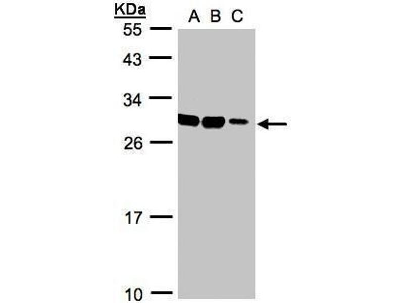 - Recombinant protein encompassing a sequence within the center region of human ASB9. The exact sequence is proprietary.