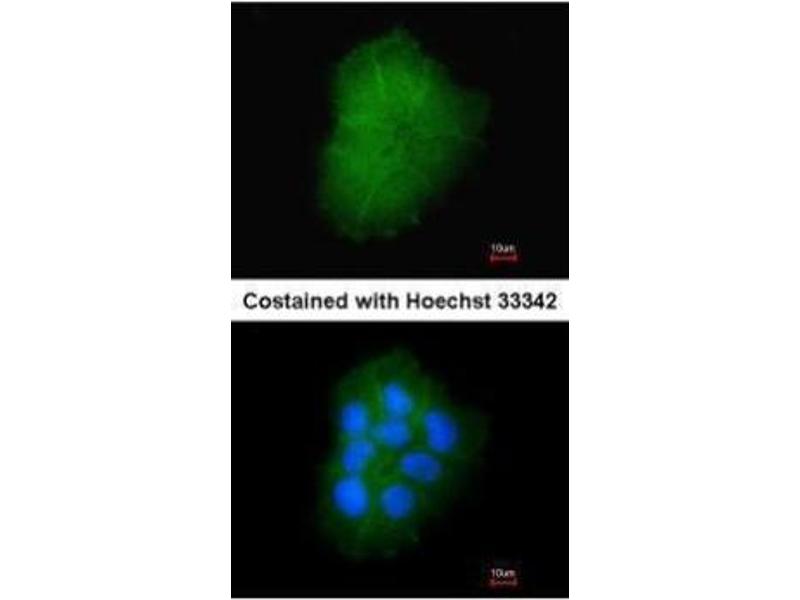 - Carrier-protein conjugated synthetic peptide encompassing a sequence within the center region of human Transmembrane protein 147. The exact sequence is proprietary.