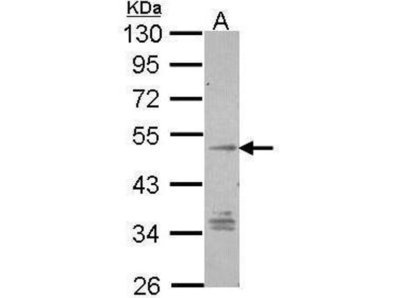 - Carrier-protein conjugated synthetic peptide encompassing a sequence within the C-terminus region of human TM7SF1/GPR137B. The exact sequence is proprietary.