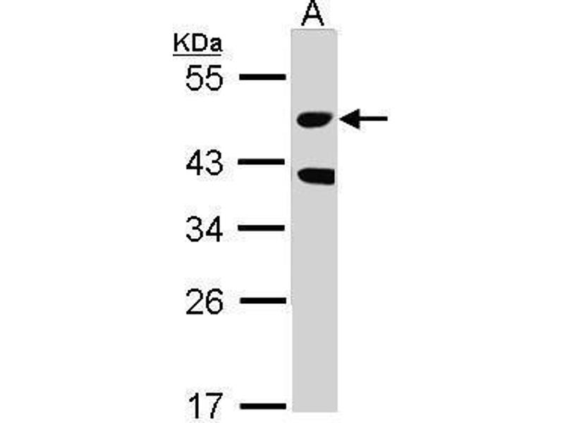 - Carrier-protein conjugated synthetic peptide encompassing a sequence within the center region of human MST3. The exact sequence is proprietary.