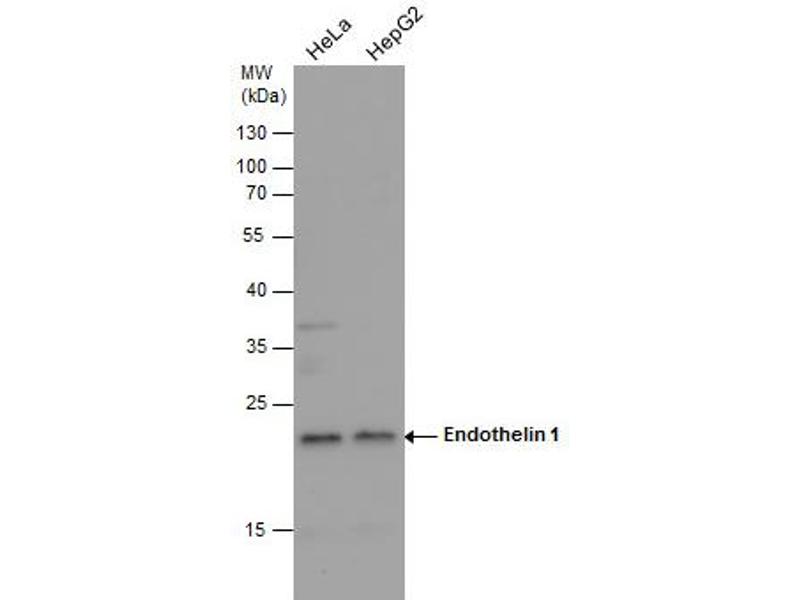 - Carrier-protein conjugated synthetic peptide encompassing a sequence within the C-terminus region of human Endothelin 1. The exact sequence is proprietary.