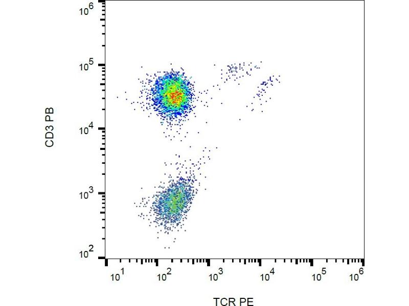 The antigen-specific T cell receptor (TCR) is composed of either alpha and beta subunit, or gamma and delta subunit. Majority of T cells present in the blood, lymph and secondary lymphoid organs express TCR alpha/beta heterodimers, whereas the T cells expressing TCR gamma/delta heterodimers are localized mainly in epithelial tissues and at the sites of infection. The subunits of TCR heterodimers are covalently bonded and in the endoplasmic reticulum they associate with CD3 subunits to form functional TCR-CD3 complex. Lack of expression of any of the chains is sufficient to stop cell surface expression.,TCRG/D