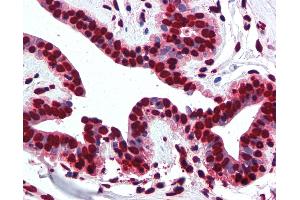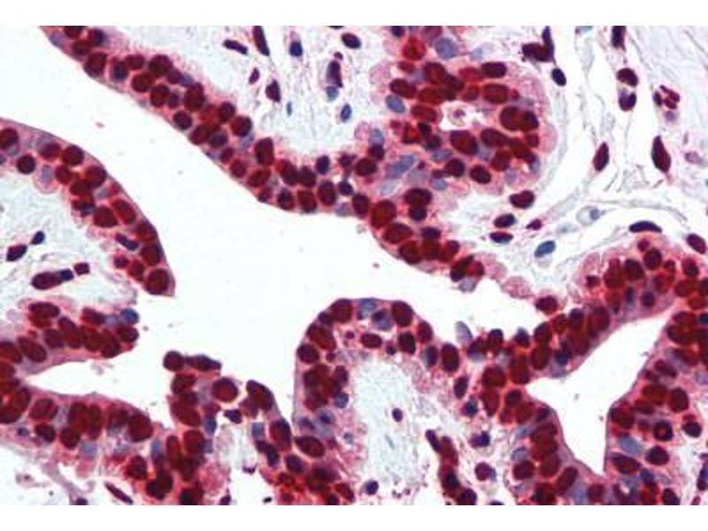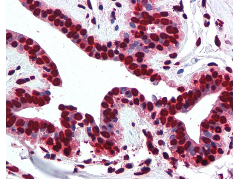 Usage: Immunohistochemistry: This antibody was validated for use in immunohistochemistry on a panel of 21 formalin-fixed, paraffin-embedded (FFPE) human tissues after heat induced antigen retrieval in pH 6.0 citrate buffer. After incubation with the primary antibody, slides were incubated with biotinylated secondary antibody, followed by alkaline phosphatase-streptavidin and chromogen. The stained slides were evaluated by a pathologist to confirm staining specificity. The optimal working concentration for this antibody was determined to be 5 μg/mL. -