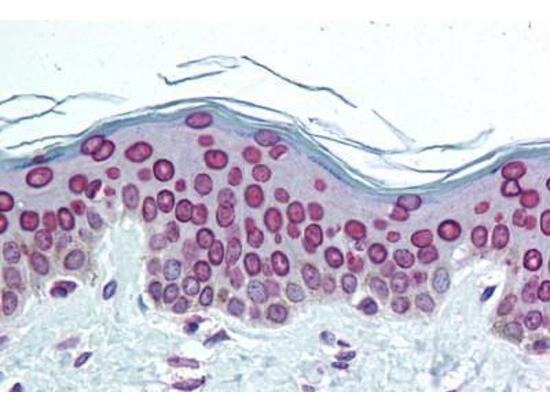 Usage: Immunohistochemistry: This antibody was validated for use in immunohistochemistry on a panel of 21 formalin-fixed, paraffin-embedded (FFPE) human tissues after heat induced antigen retrieval in pH 6.0 citrate buffer. After incubation with the primary antibody, slides were incubated with biotinylated secondary antibody, followed by alkaline phosphatase-streptavidin and chromogen. The stained slides were evaluated by a pathologist to confirm staining specificity. The optimal working concentration for this antibody was determined to be 1:50. -