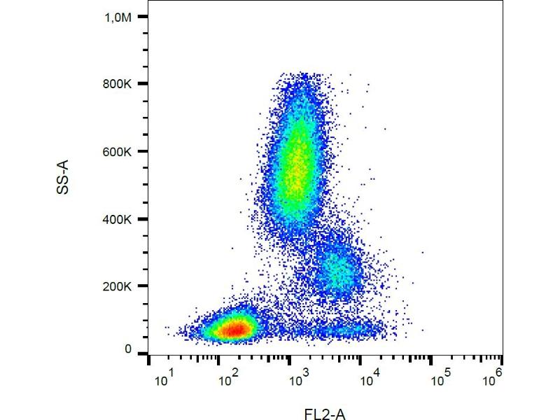Purified antibody is conjugated with R-phycoerythrin (PE) under optimum conditions. Unconjugated antibody and free fluorochrome are removed by size-exclusion chromatography.