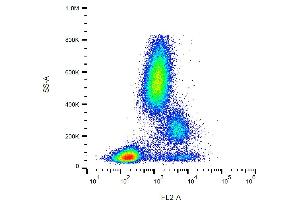 Flow cytometry: The reagent is designed for analysis of human blood cells using 10 μL reagent / 100 μL of whole blood or 106 cells in a suspension. The content of a vial (1 ml) is sufficient for 100 tests.