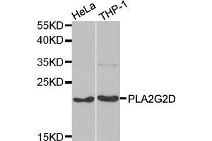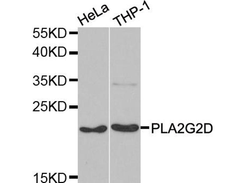 This Rabbit Polyclonal antibody specifically detects PLA2G2D in WB, IHC and IF/ICC. It exhibits reactivity toward Human, Mouse and Rat.