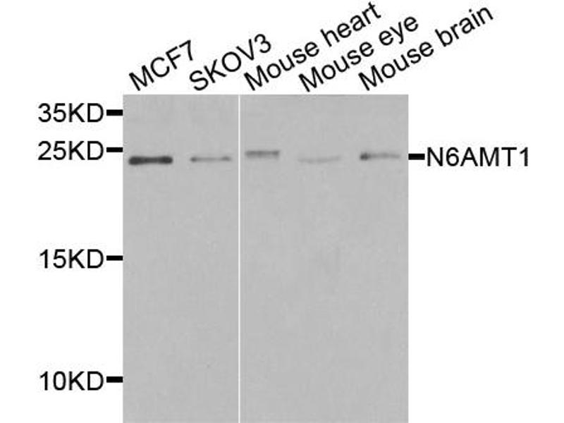 This Rabbit Polyclonal antibody specifically detects N6AMT1 in WB, IHC and IF/ICC. It exhibits reactivity toward Human, Mouse and Rat.