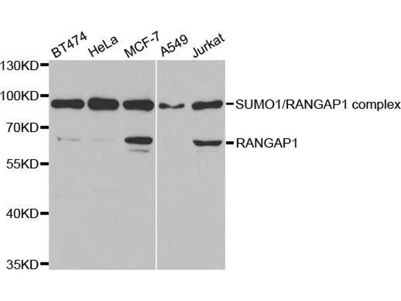 The Rabbit Polyclonal anti-RANGAP1 antibody has been validated for WB and IHC. It is suitable to detect RANGAP1 in samples from Human, Mouse and Rat.